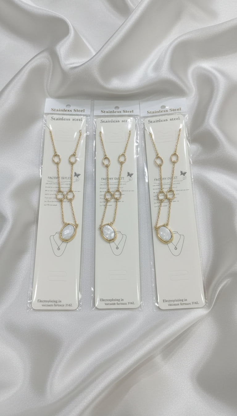 Centerpiece: Eye-catching oval opal or mother-of-pearl pendant at the bottom for added elegance